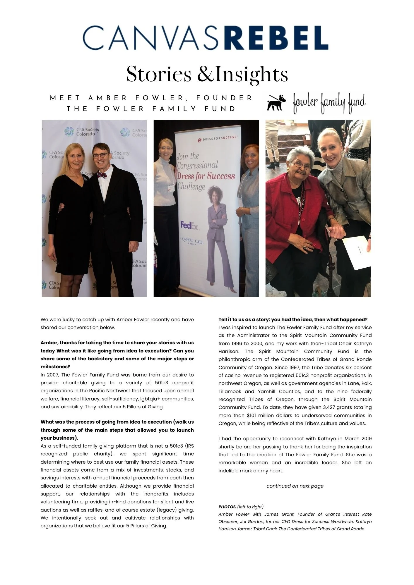 Amber Fowler shares insight into the genesis and history of launching The Fowler Family Fund. -